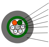 填充繩或松套管填充油膏加強鋼絲光纖包帶復(fù)合鋼(鋁)帶聚乙烯護套