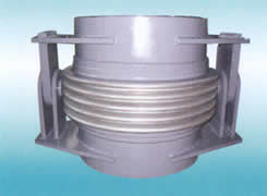 單式角向型膨脹節(jié)由接管.波紋管以及與接管相連的一對鉸鏈構(gòu)成。它只能吸收單平面的角向位移,吸收位移時(shí)應(yīng)有二個(gè)或三個(gè)鉸鏈膨脹節(jié)組合使用,同時(shí)鉸鏈具有承受內(nèi)壓力推力。